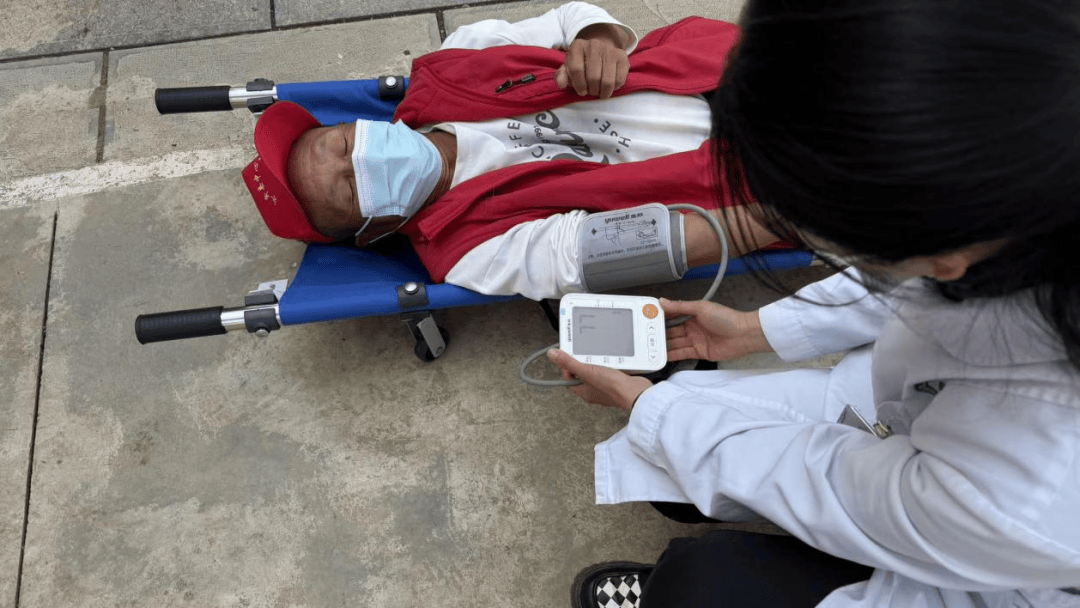 平安集结点上,医疗保障组早已到位,为呈现头晕、严重的白叟丈量血压、吸氧,轻声安抚缓解情感,一名被担架转移的白叟很快情感平复、血压恢复一般。